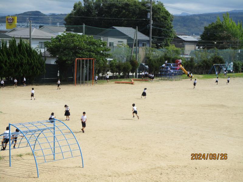 運動会練習が始まり、疲れているかと思いきや昼休みの様子です。リレー練習もしていました。本当に元気いっぱいです。