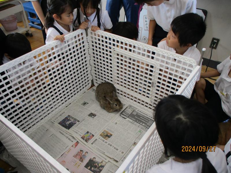 1年生の生活科です。飼育しているウサギを観察しました。