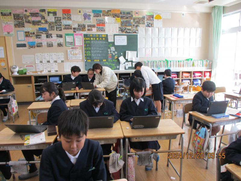 4年生は図書館で冬休みの貸し出しやICTを使いまとめ