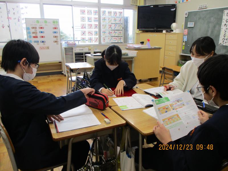2年生です。テスト直しや2学期の振り返りをしていました。