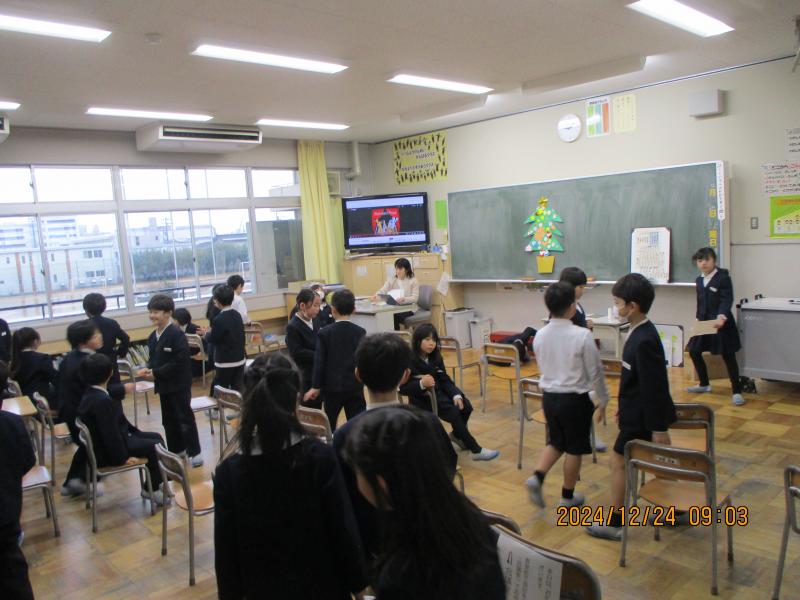 1年生の各クラスの様子です。お楽しみ会の練習かな?