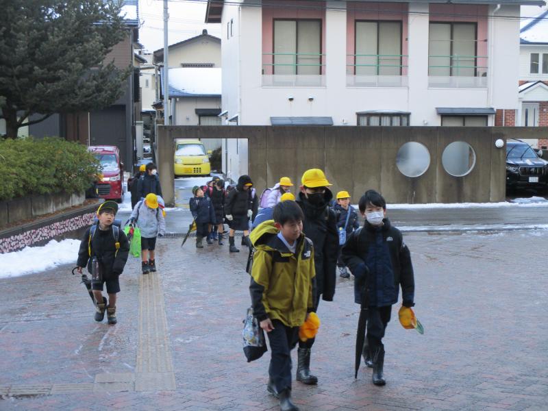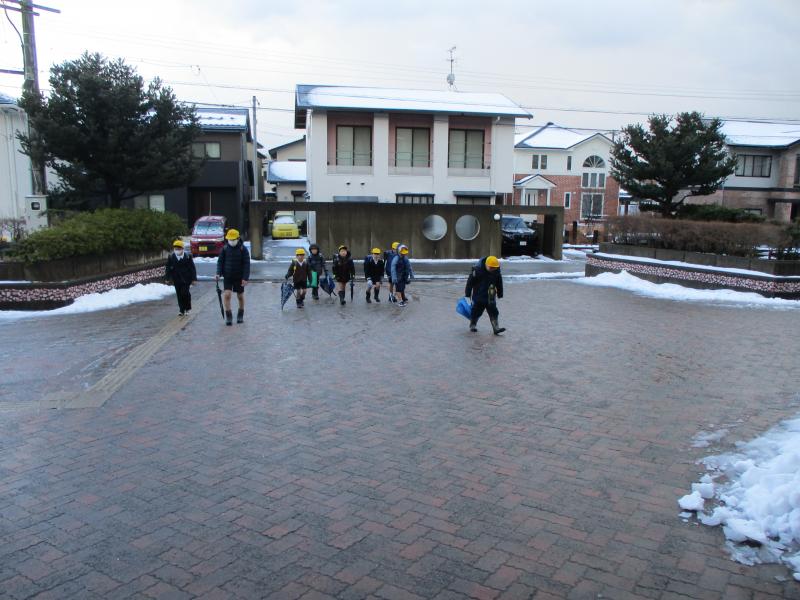 雪が心配されましたが、降雪はなく学校前は雪がなくなりました。風が強く帽子が飛ばされないか心配な登校でした。