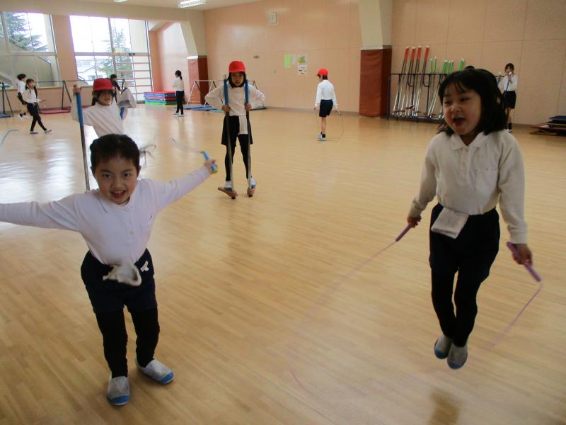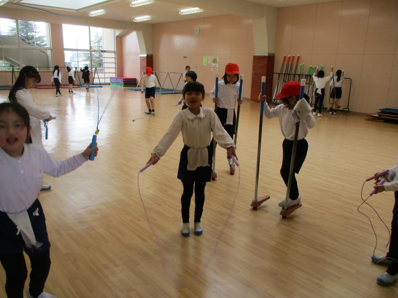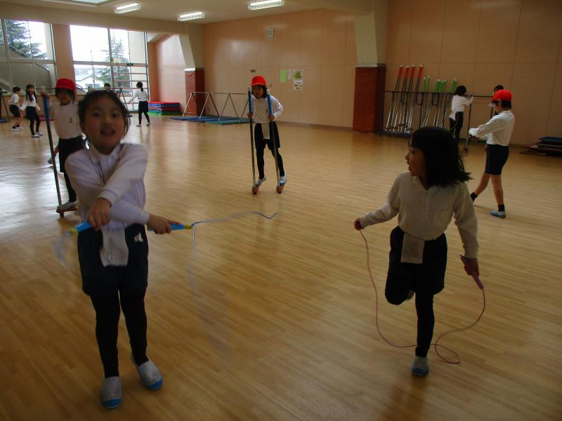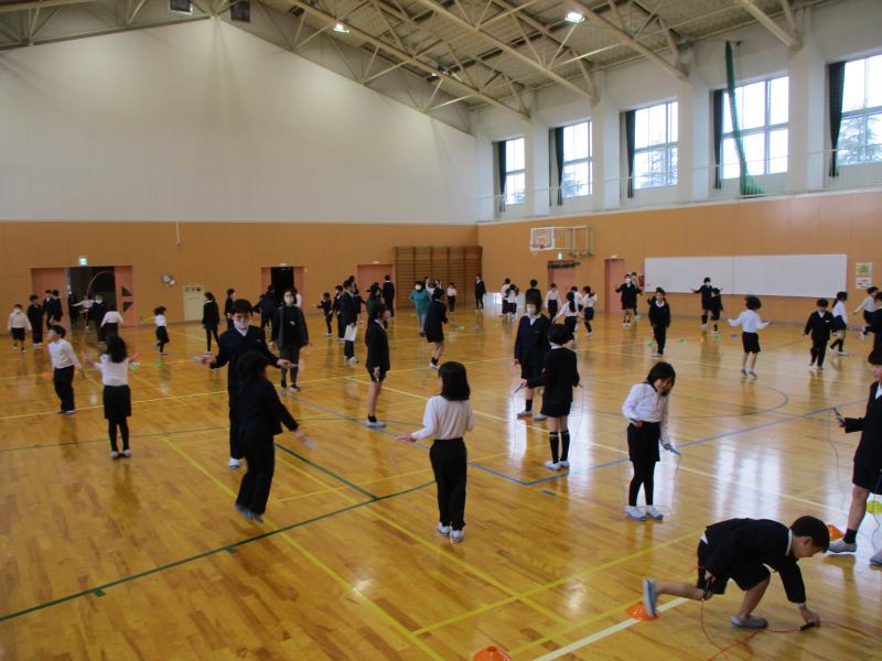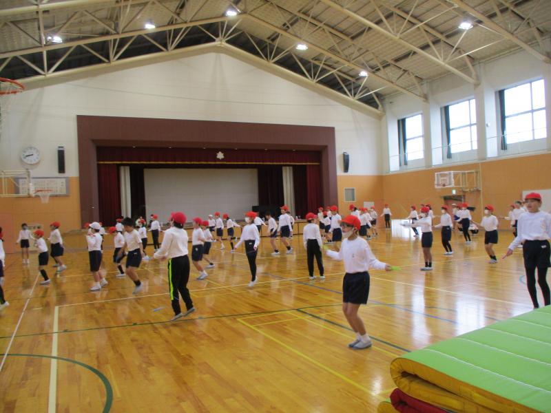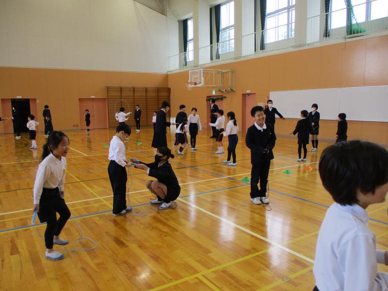 今日の昼休みから、縄跳びでの異学年交流がスタートしました。高学年の児童は優しく低学年に縄跳びが上手に跳べるコツを教えていました。