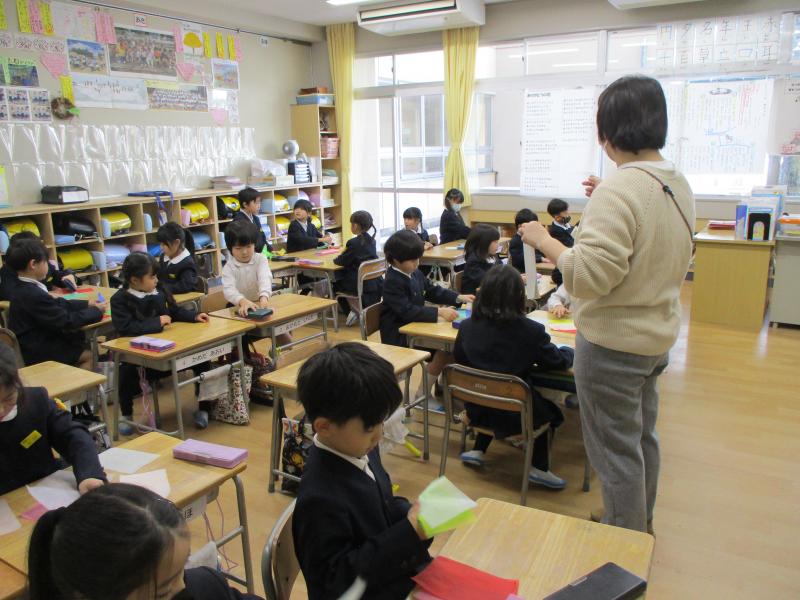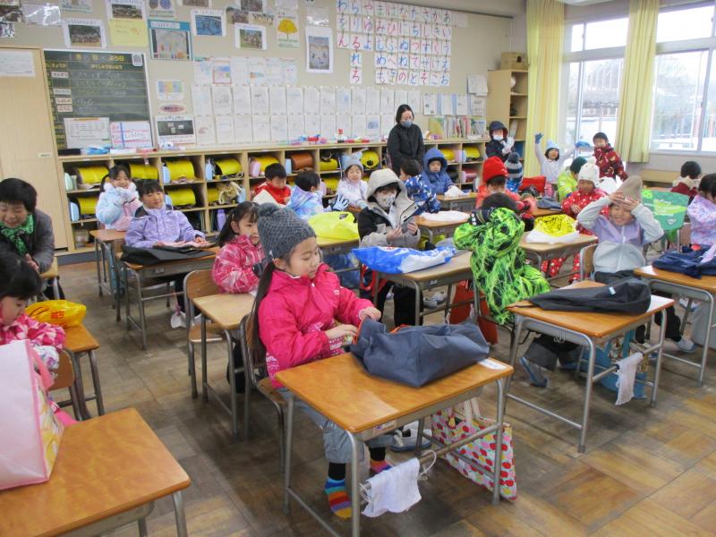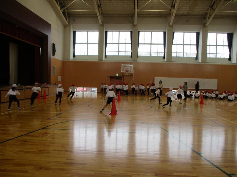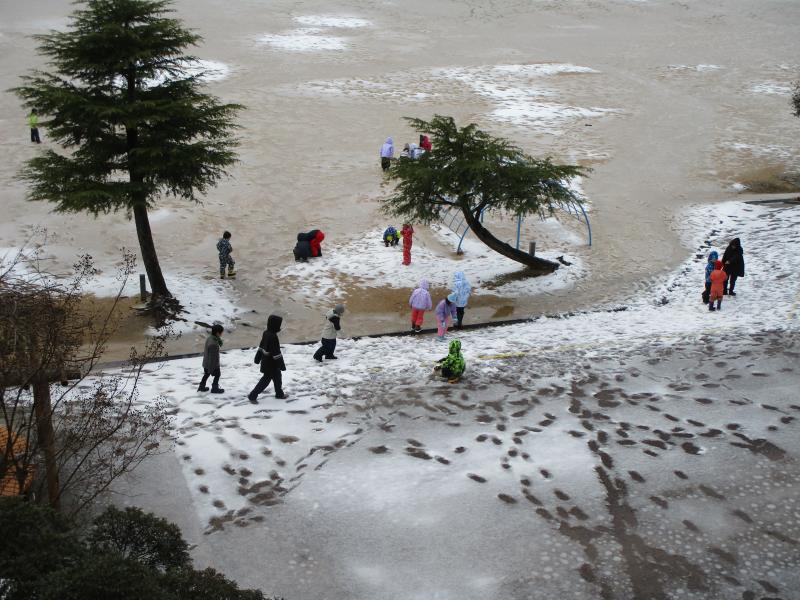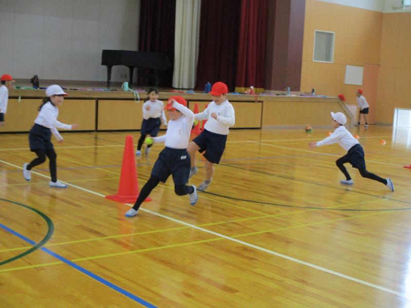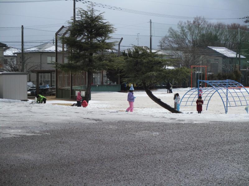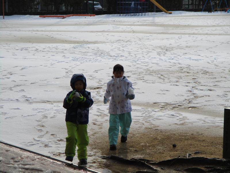 1年2組は、朝1番に屋外で冬遊びをしていました。