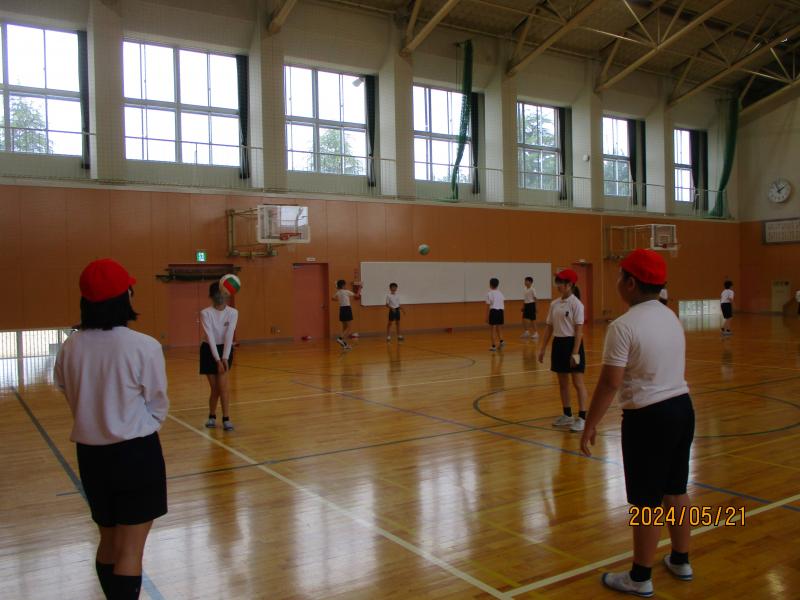 朝の体育館です。5年生は元気にドッジやバスケをしています。