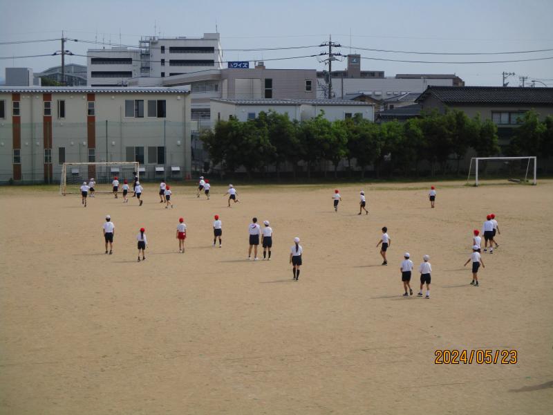 昨日は雨で屋外で遊ぶことができなかったので今日はたくさんグランドで遊んでいます。