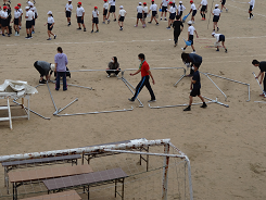 明日の運動会に向け、午後から5・6年生と先生方が運動会の準備をしています。一つの行事を行うにはたくさんの時間と労力が必要です。先生方も夏休みから準備をしてきました。ここ2年間できなかった前日準備も子どもたちの手によって行われています。明日は当日の結果だけでなく、これまでの練習や準備を含めた過程もほめ、認めていきたいと思います。