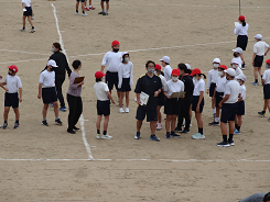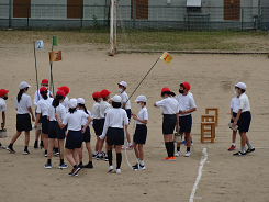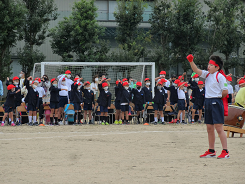 運動場の安全を守るために、3人の6年生が低学年がトラックに入らないように動いてくれました。さすが、6年生です。すばらしい。