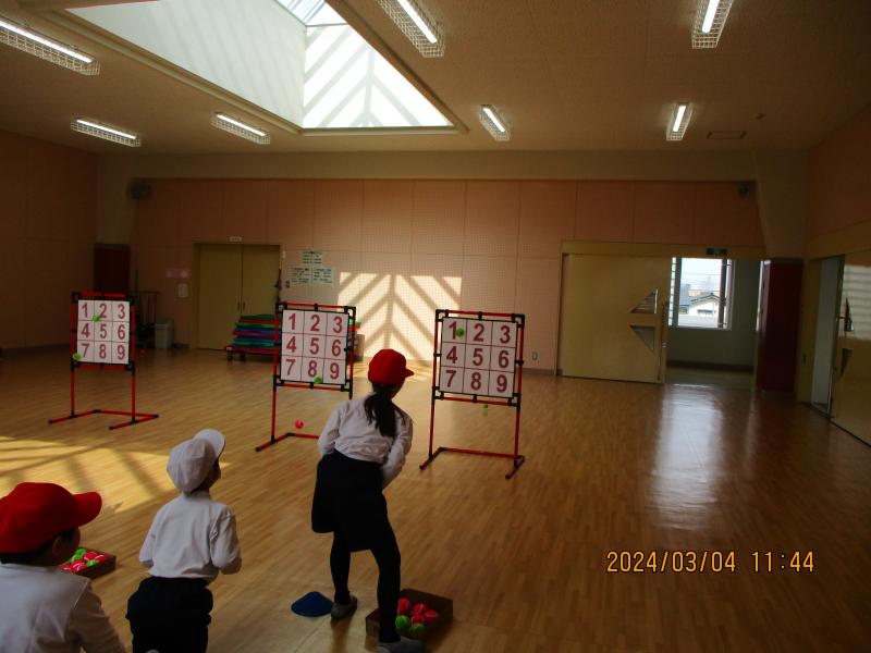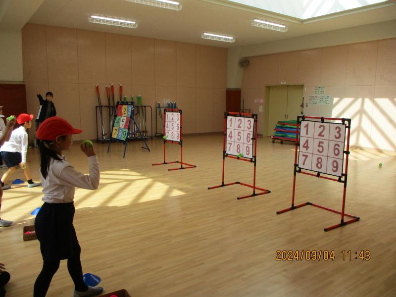 1年生はドッジボール、2年生は的にボールを投げていました。