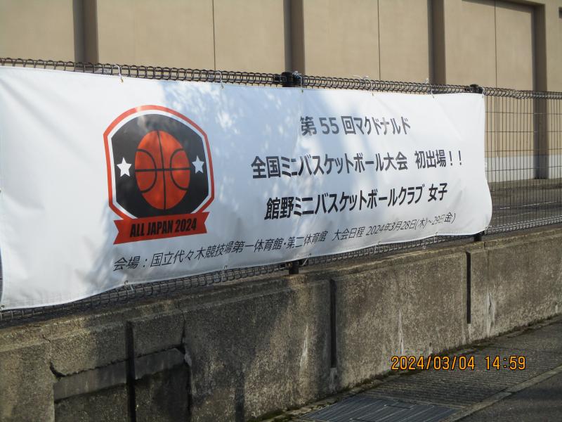 学校の西側には、野球に続き女子ミニバスの全国大会出場の横断幕が掲げられています。
