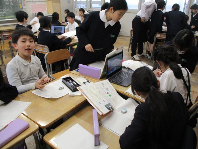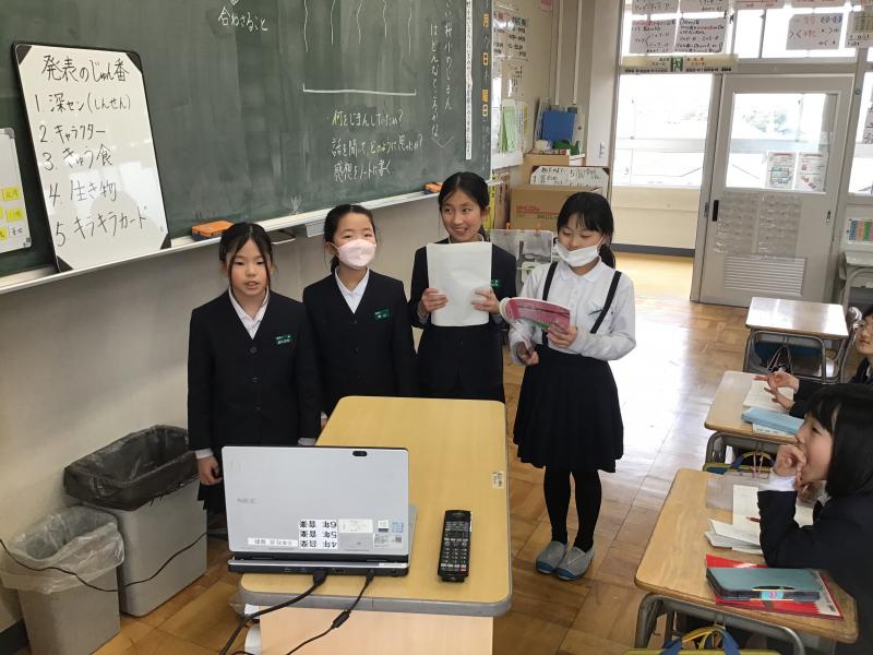 発表の当日は、途中でオンラインが途切れることや流行り風邪で欠席児童が多くなってしまいました。そのようなトラブルの中、グループのメンバーと協力して最後までやり切りがんばることができました。