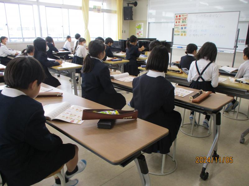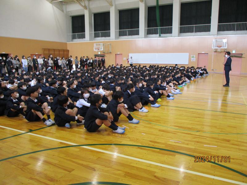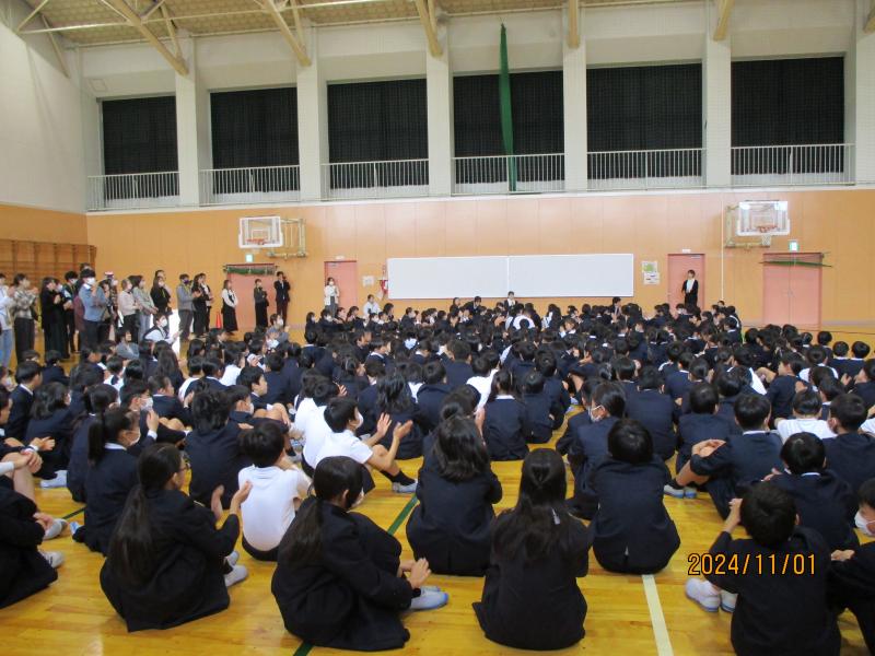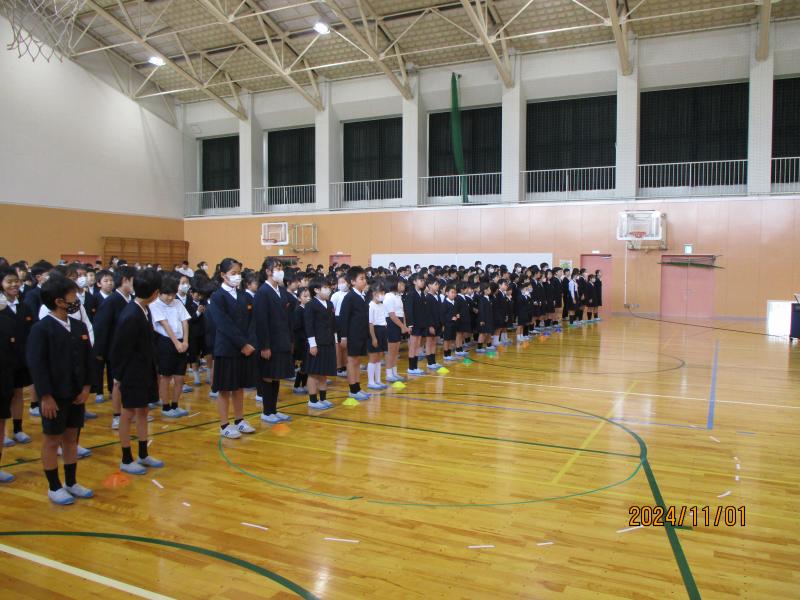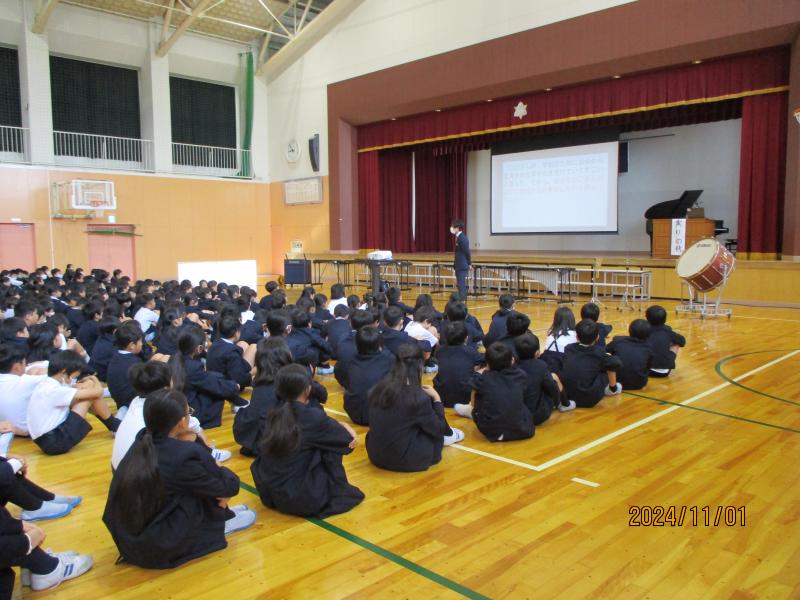 全校集会がありました。校長からは「実りの秋」についてのお話があり、その後、学習についてや生活についてのお話がありました。