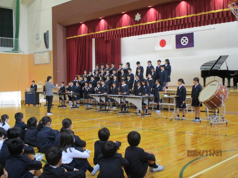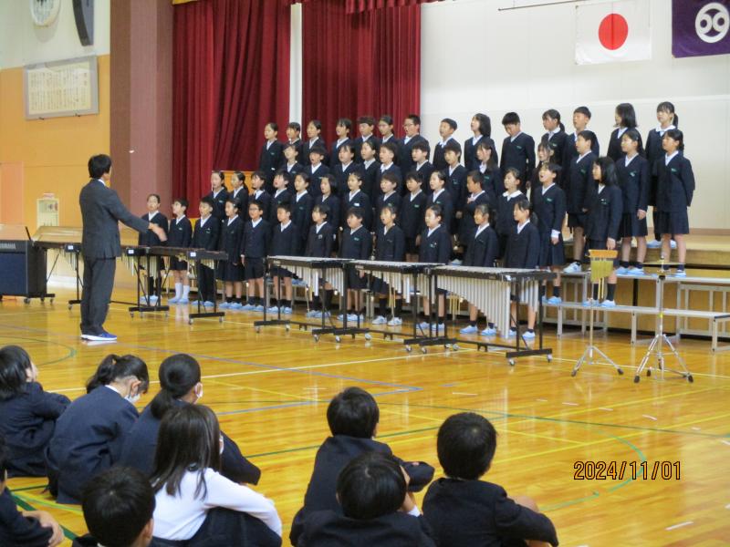 そして、4年生の音楽会に向けて校内発表がありました。多くの保護者が参観する中、堂々と合唱・合奏しました。