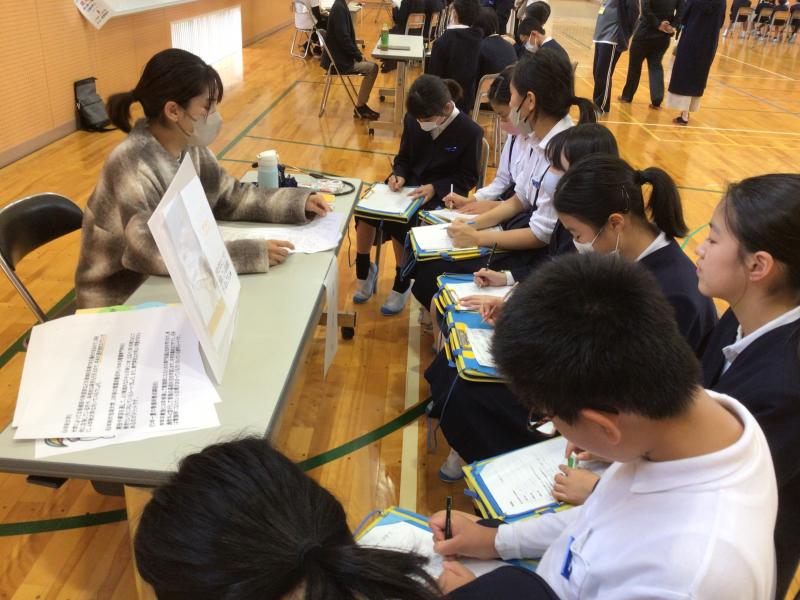ツエーゲンU18コーチ作田様やなごみ園の先生、マックユニオンの松尾社長をはじめ、ソフトエンジニア、警察官、保護者の方で看護師や美容師など、様々な職業の方をお呼びし職業講話が開催されました。