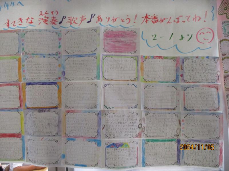 4年生の教室・音楽会の感想が廊下に掲示がありました。