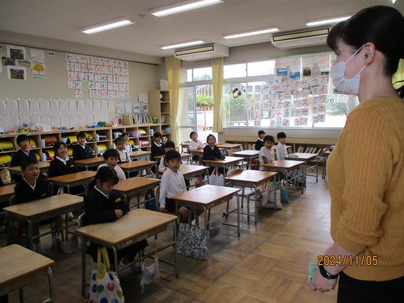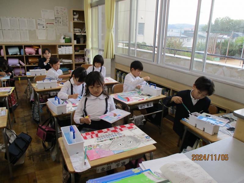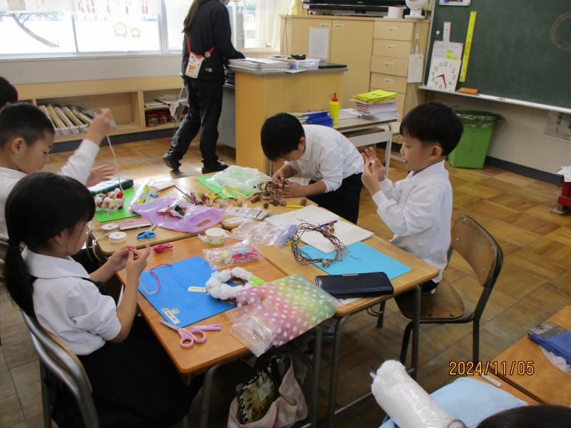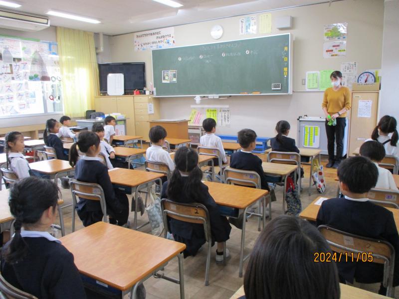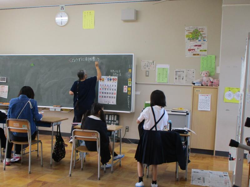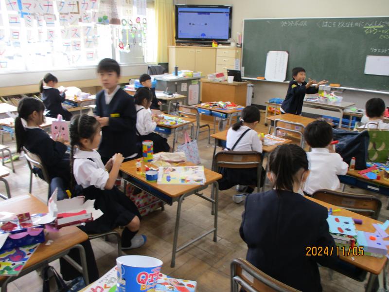 1年1組の教室では、いつも学校内をきれいに掃除して頂いている校務士の方に、日頃の感謝の気持ちを伝えていました。