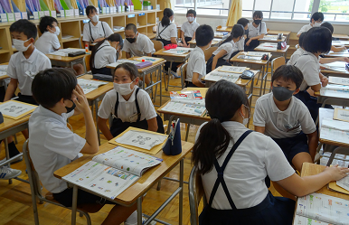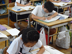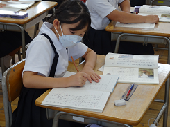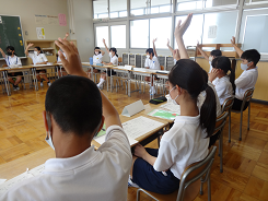 台風一過、今日は涼しい一日でした。「○○な秋」はたくさんありますが、秋は勉強がはかどる季節です。さて、6年生が外国語の授業で「昨日、何を食べた」という学習をしていました。「クラスメイトは何を食べたのかな」楽しそうに話し、一生懸命聴いている姿、さすが6年生。
