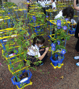 1年生が育ててきたあさがおに種ができました。たくさんとれた種をうれしそうに数える子たち。算数で学んだ10のまとまりをつくり、一生懸命数えていました。5つ植えた種が30にも40にも増えてびっくり。自然の力ってすごいですよね。