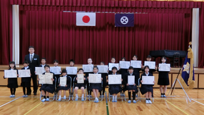今日までにたくさんの子が賞をいただきました。その表彰伝達を本日朝に行いました。科学作品コンクール、JA共済書道コンクール、市図書館を使った調べる学習コンクール、昆虫図画作品展、硬筆コンクールに見事入賞です。中でも硬筆コンクールでは「特選」をもらった子が16名もいました。これからも何事にも挑戦する気持ちをもって頑張りましょうね。
