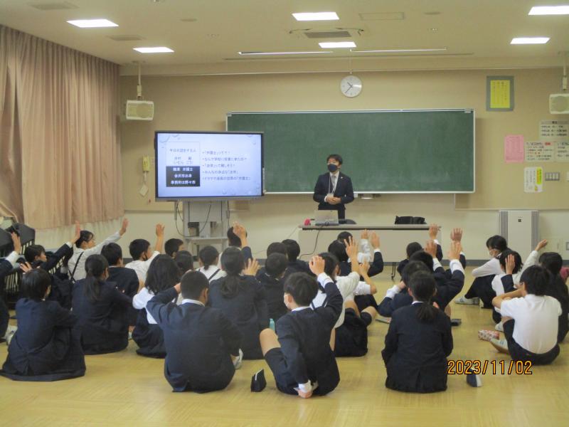 今日はゲストティーチャーによる、特別授業がありました。6年生の弁護士による「いじめ未然防止授業」です。「いじめは悪魔の木」と講義の中でありました。いじめという小さな種が大きく育つ悪魔の木。学校としても、未然防止、早期発見に努めていきます。