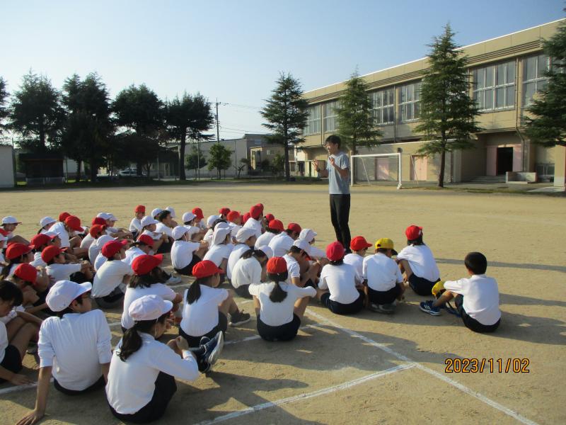 4年生には、陸上世界陸選手権日本代表の長田選手を講師に迎え、陸上教室が開催されました。速く走るコツだけではなく、考えて動く・練習する大切さを教えて頂きました。「速い!」も一言でした。