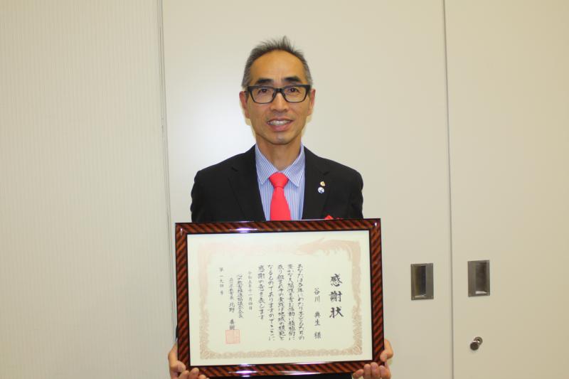 本日、心の教育推進大会で、県の北野教育長から、元PTAの会長である谷川典生様が、心の教育推進感謝状を頂きました。社会全体で子ども達を育てることが重要と考え、館野小をはじめ、布水中学・野々市明倫高校で、大人が規範となるために、登校してくる子どもに、20年間、校門で挨拶を続け、子ども達の豊かな心の育成に貢献されました。おめでとうございます。