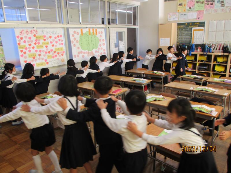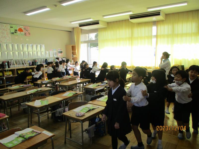 素敵な笑顔にあふれていました。1年生の音楽で「線路はつづくよ~どこまでも~」と歌いながら,じゃんけん列車をしていました。私も参加しましたが、すぐに負けていました。楽しく,大きな声で活動する姿は1年生ならではでした。