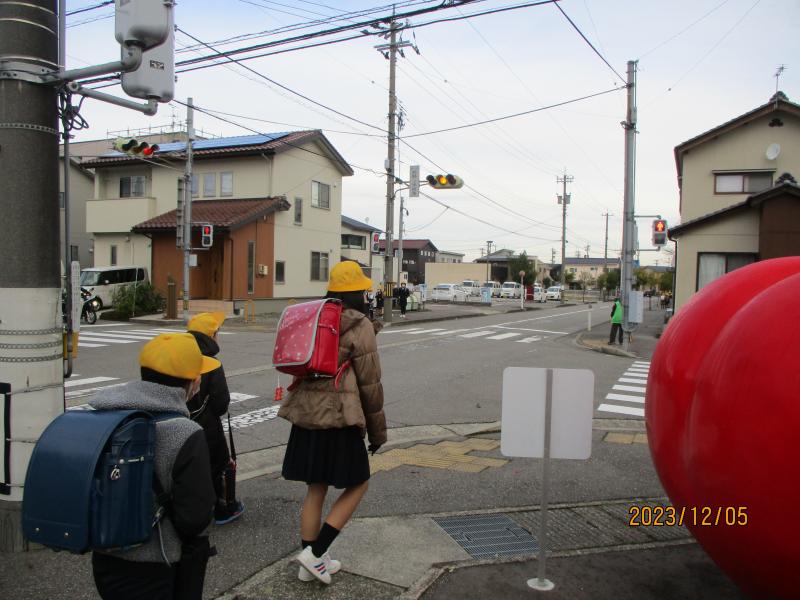 朝の様子です。年末に向け、降雪による交通事故や不審者出没など、いろいろと心配事があります。学校としてできる限り、校区をまわりたいと思います。また、見守り隊の皆様におかれましては、児童の見守りに感謝するとともに、保護者の皆様も是非、児童の安全にご協力よろしくお願いします。
