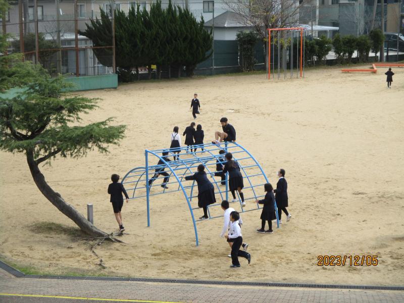 休み時間の様子です。午前中は肌寒く感じましたが、子ども達は元気に遊んでいました。5年生は、竹馬に挑戦していました。