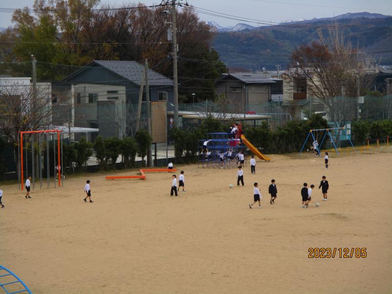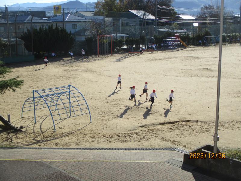 4年生の体育では、天気が良く、グランドに出て走る姿がありました。やはり、外を走るのは気もよさそうでした。