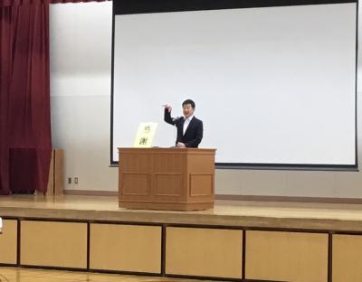校長先生から「感謝」の言葉についてのお話がありました。ありがとうを伝えると、広がっていく魔法の言葉であることを話しました。「ありがとう」が学級・学校全体に広がり、あたたかい学校を目指していきましょう。