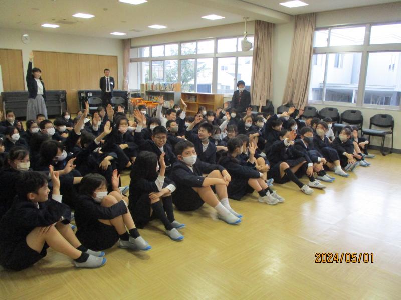 生徒指導の先生からは、よいことを伝えるポカポカカードの説明がありました。全校にあったかい言葉を広げること、学習の先生からは、5月スタートバッチリ習慣のお話がありました。「聴く」という聞き方の意味のお話がありました。目を見て、返事をしながら、分かろうしながら聴くとどんどん賢く優しく成長していきましょう。