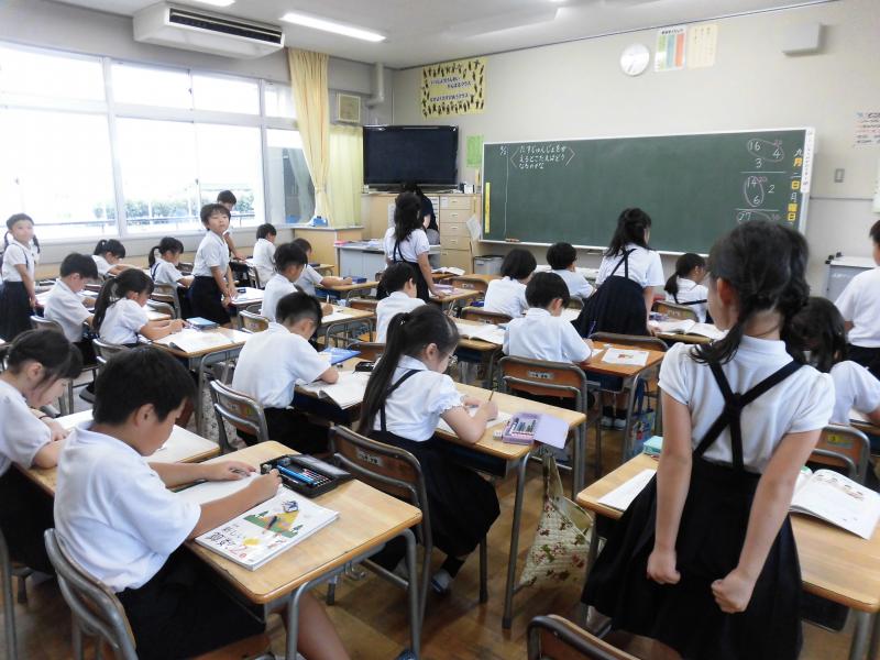 3年2組は 算数の割り切れない割り算「13÷4」挑戦中