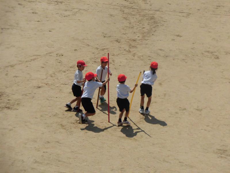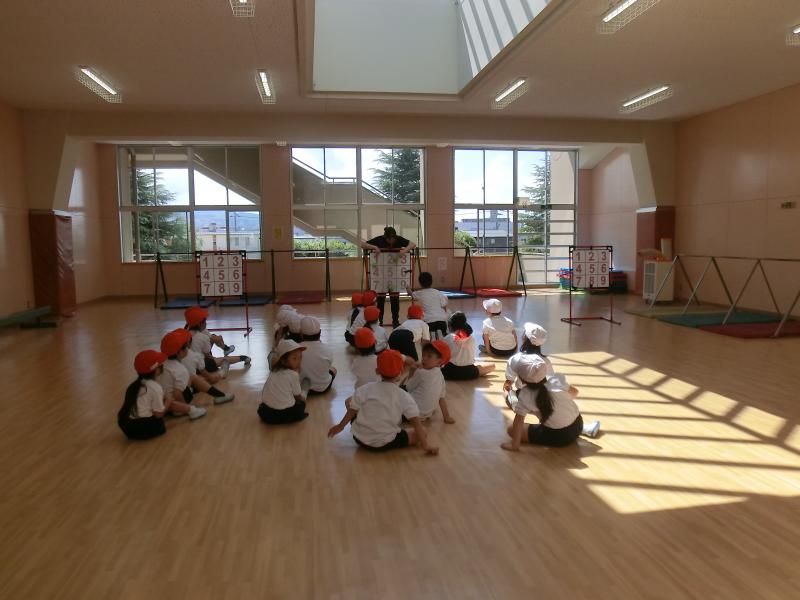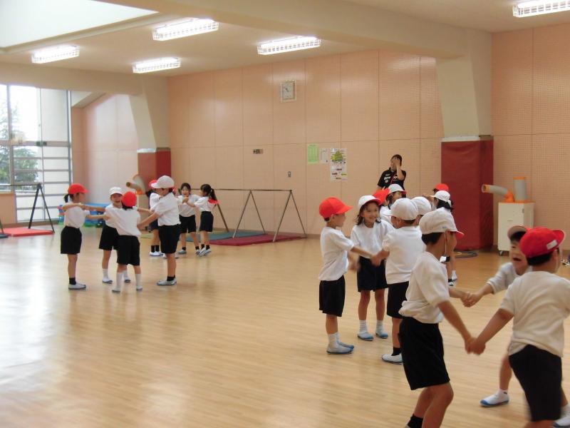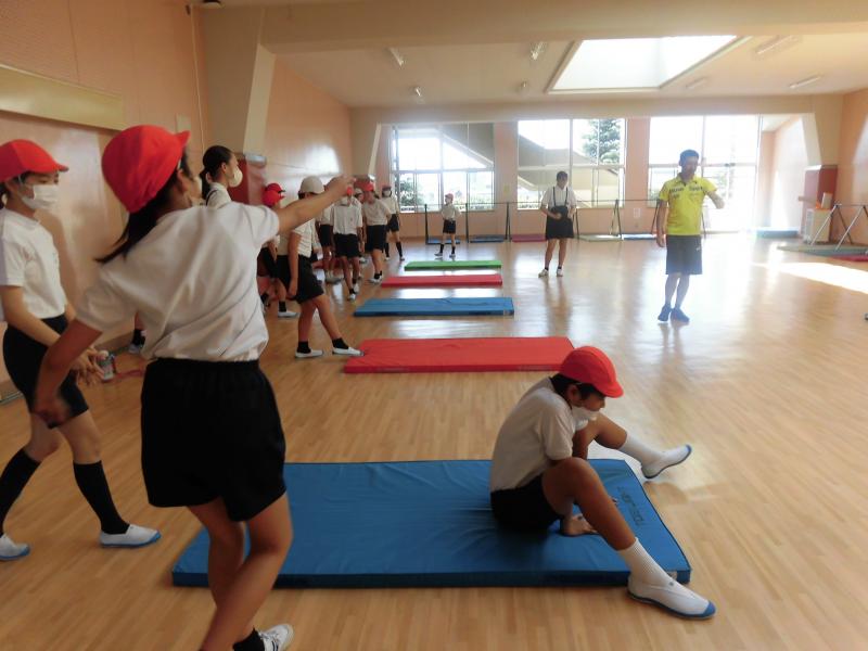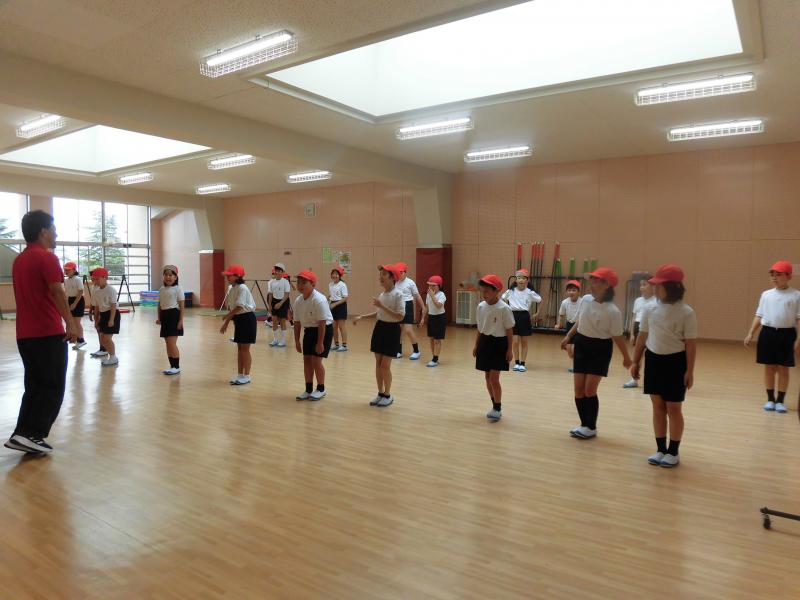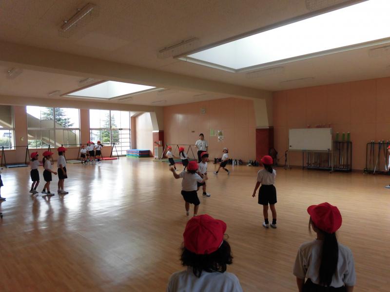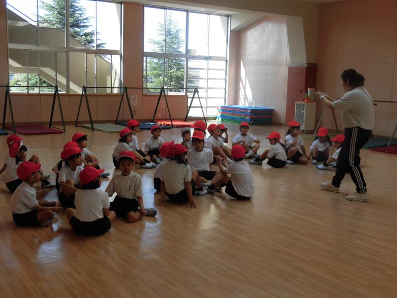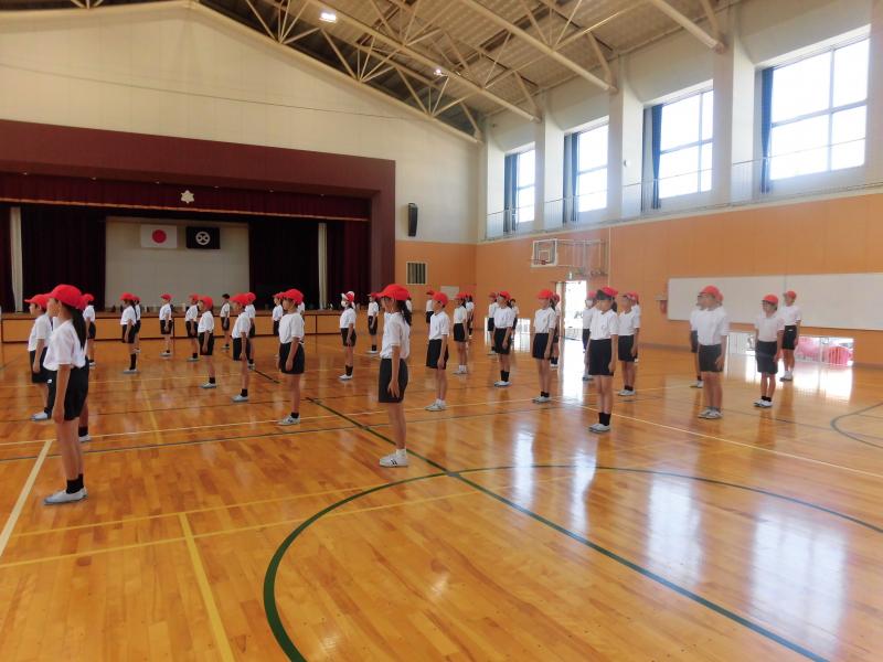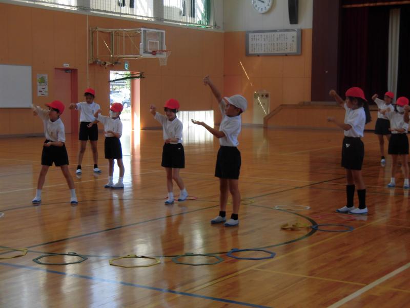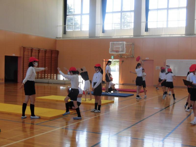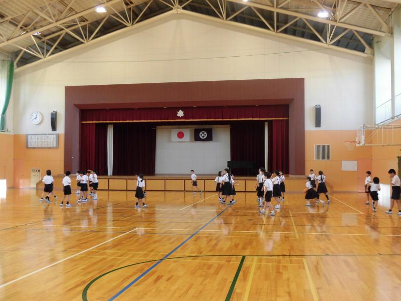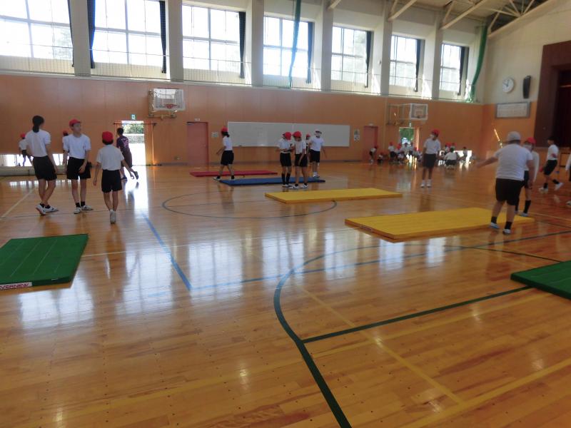 体育館にお邪魔しました。高学年は運動会の組み体操に向けて少しずつ体を慣らしています。