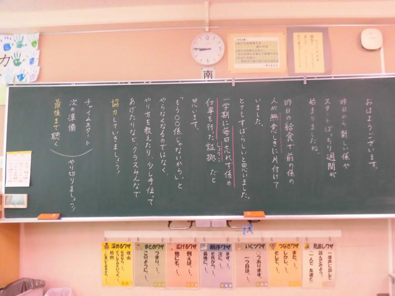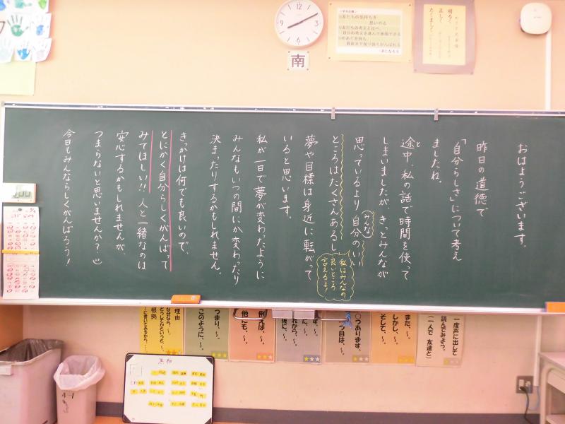 こんな素敵な黒板を見つけました。担任として、子どもの良さを見つけ、子どもに発信することで、クラスの子どもも、仲間の良さを見つける大切さや目・心を養って欲しい思います。