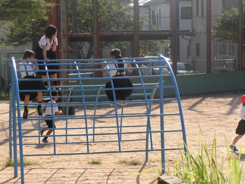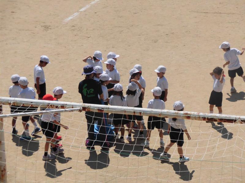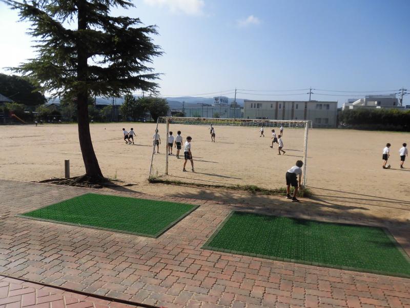 気持ちのいい朝です。子ども達も元気にサッカーや遊具で遊んでいます。