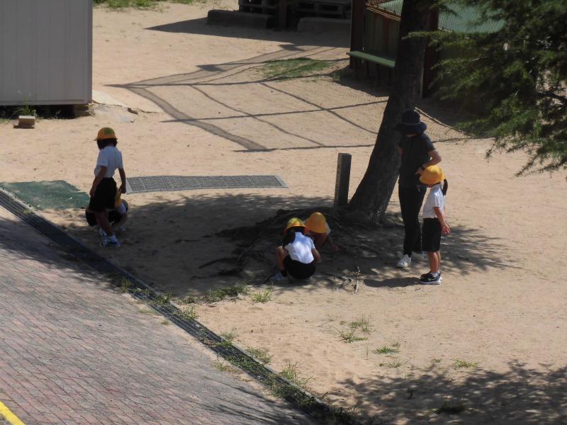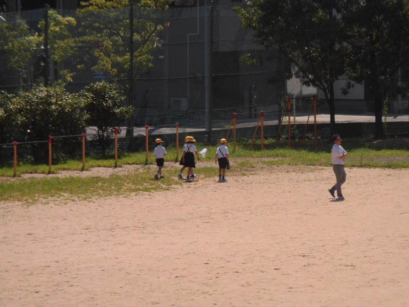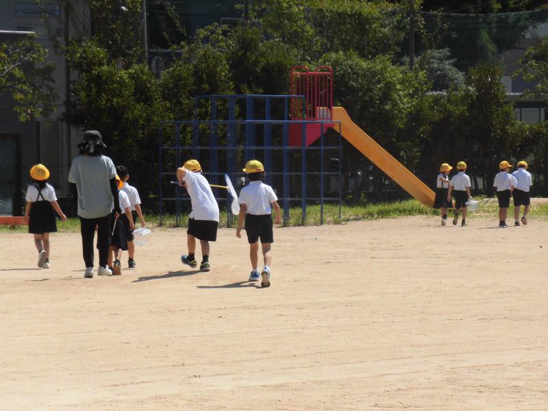 2年生の生活科 秋の虫探しです。暑い中、「いた!」「捕まえた」と歓声が聞こえてきました。