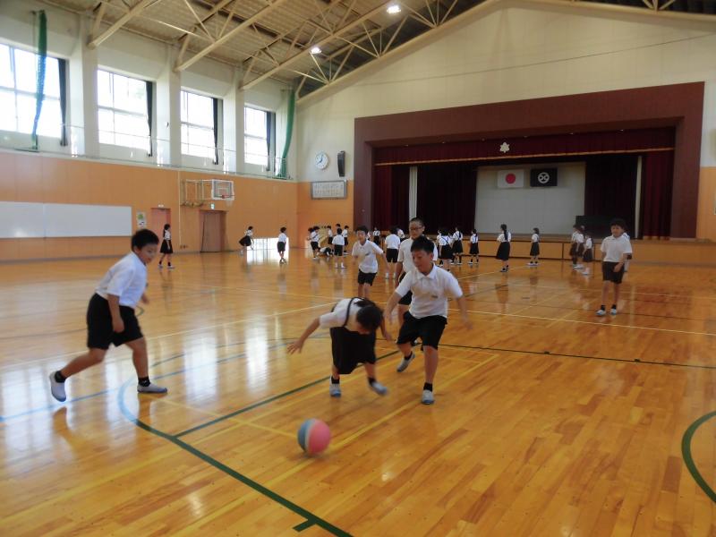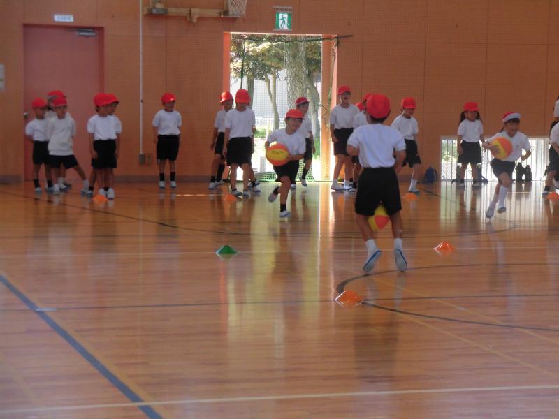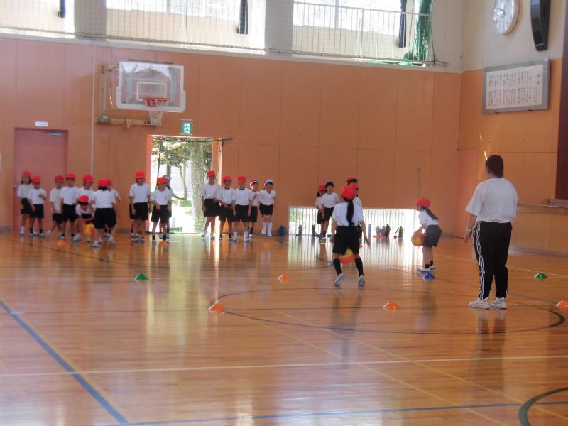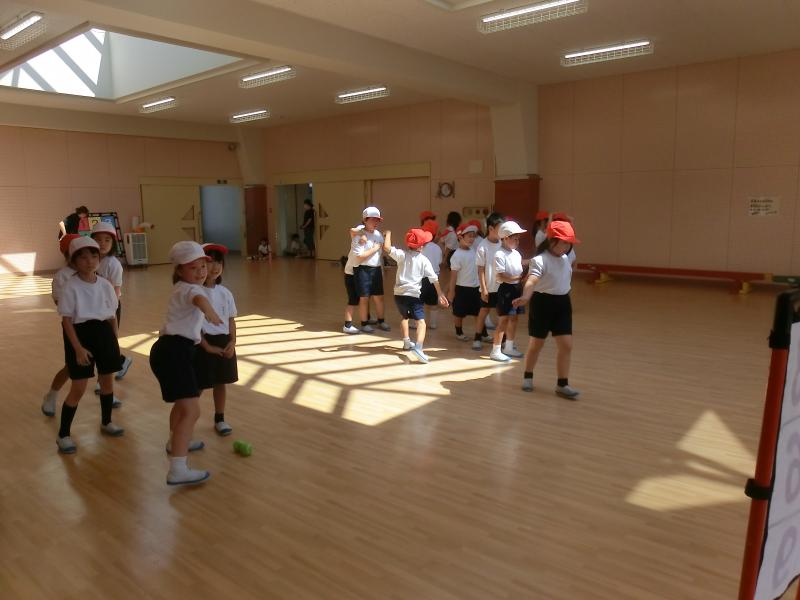 体育館では、楽しくバスケットボールやドッジボールをしていました。