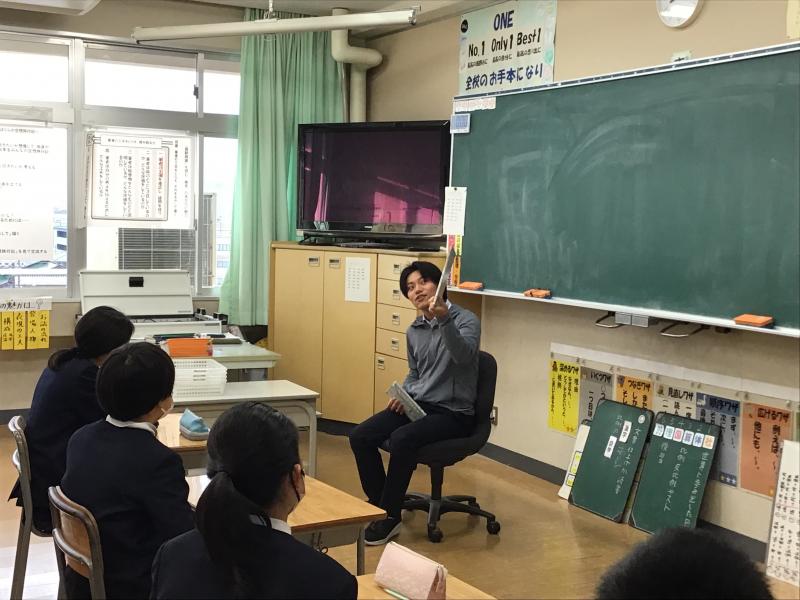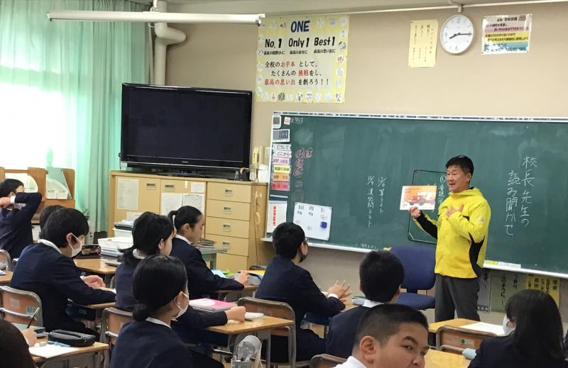 私は子どもの時に、親が読んでくれ、我が子にも読み聞かせた「しょうぼうじどうしゃじぷた」を6年生に読みました。この絵本は大人が読んでも「そうだな!」「よっしゃ、頑張ろう!」という気持ちになる、私のお勧めの絵本です。
