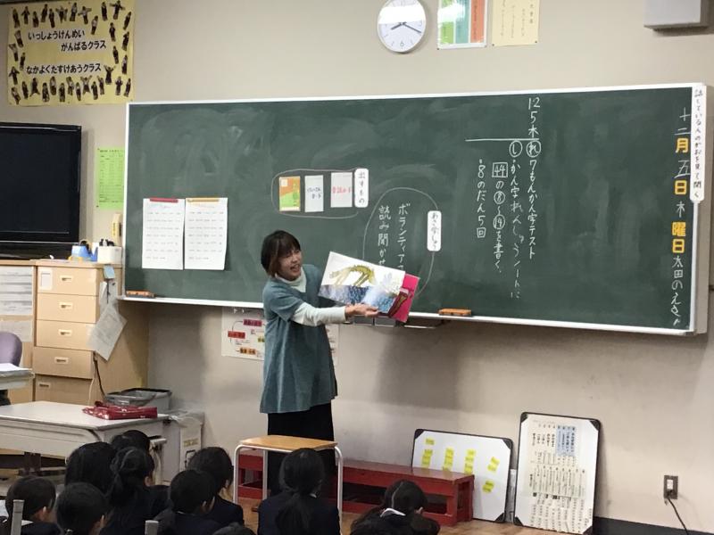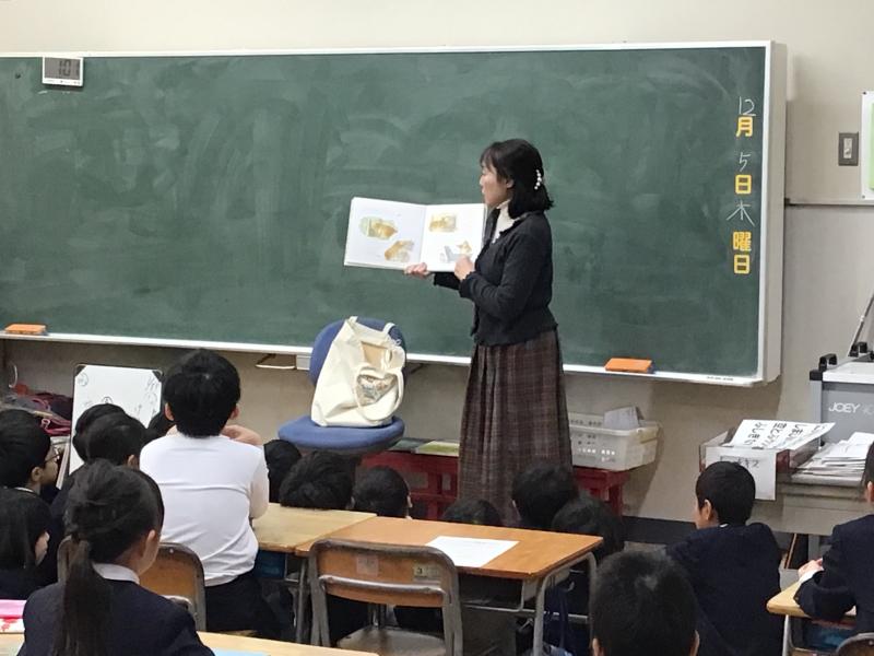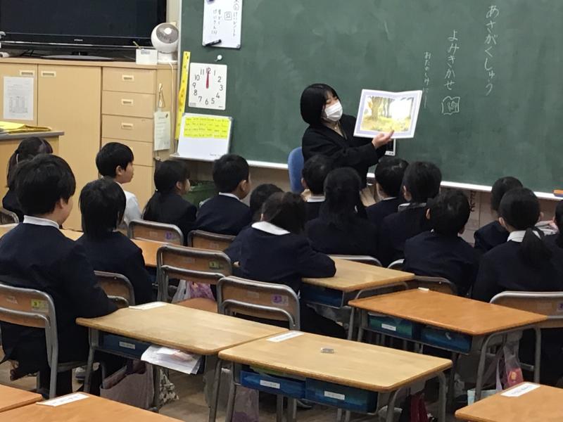 読み聞かせボランティアさんの他、先生が他のクラスに本を読みにいきました。日頃の担任とは違い新鮮な気持ちで聞き入っていました。