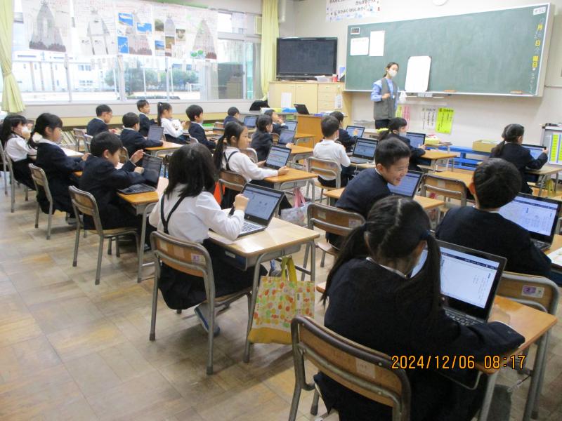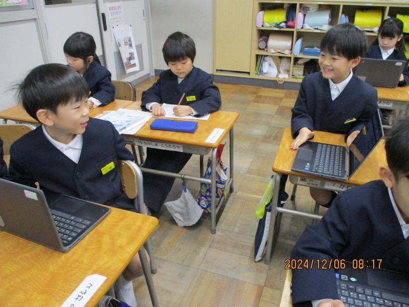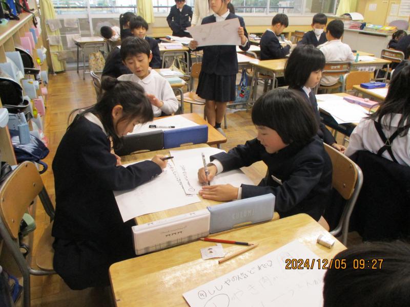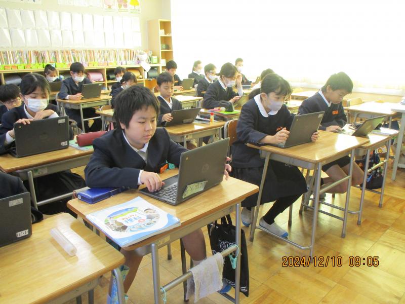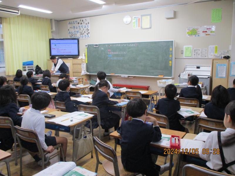 5年生の授業の様子です。授業スタイルも様変わりして、子ども達が前を向いて先生のお話を聞く、一斉授業(先生が主体)から 子ども達が主体的に学ぶ、協働的な学びに授業改善が進んでいます。