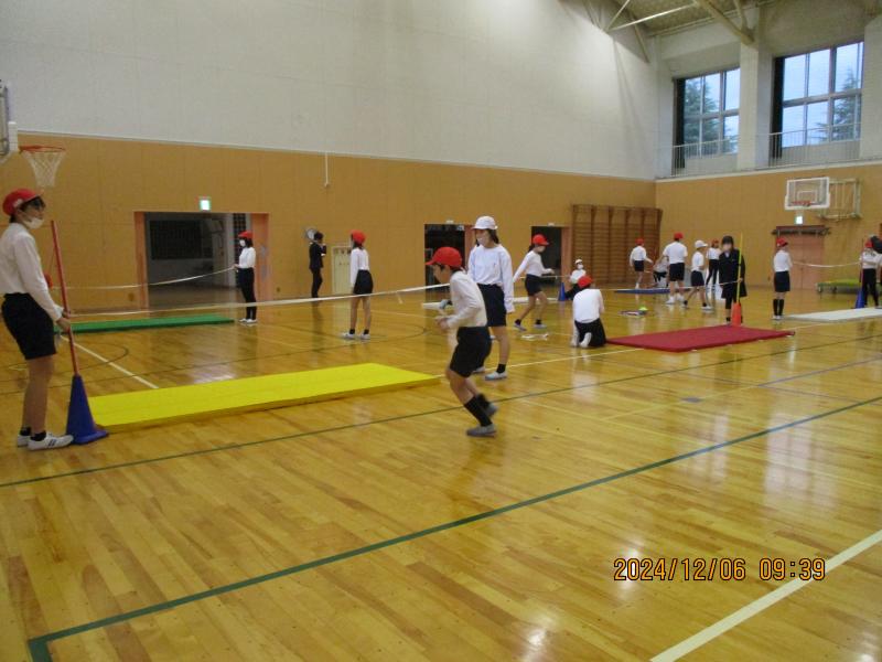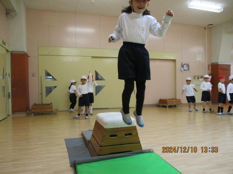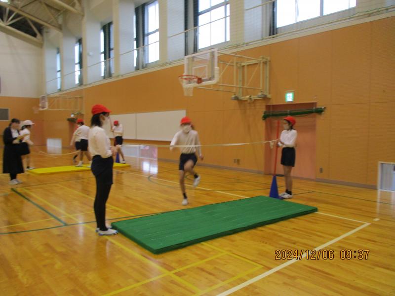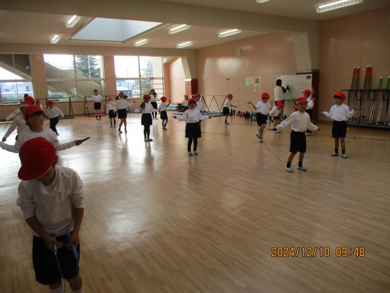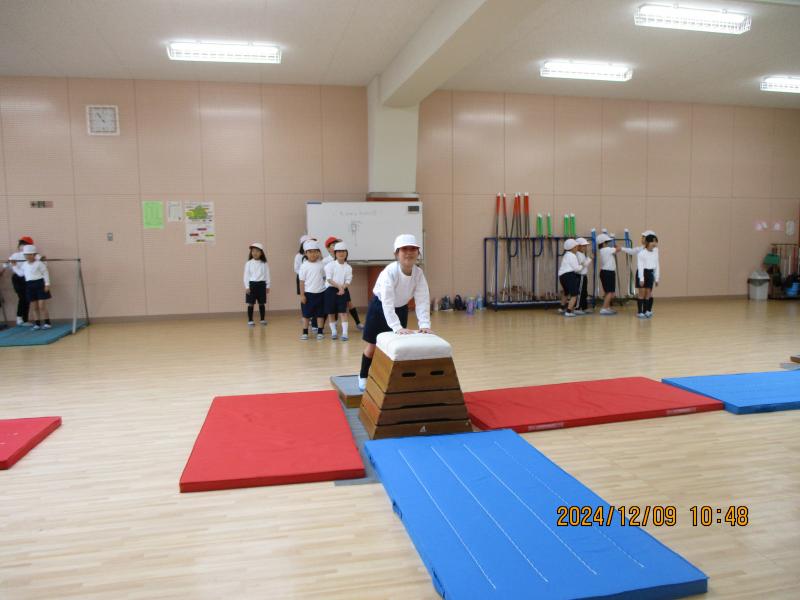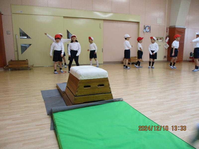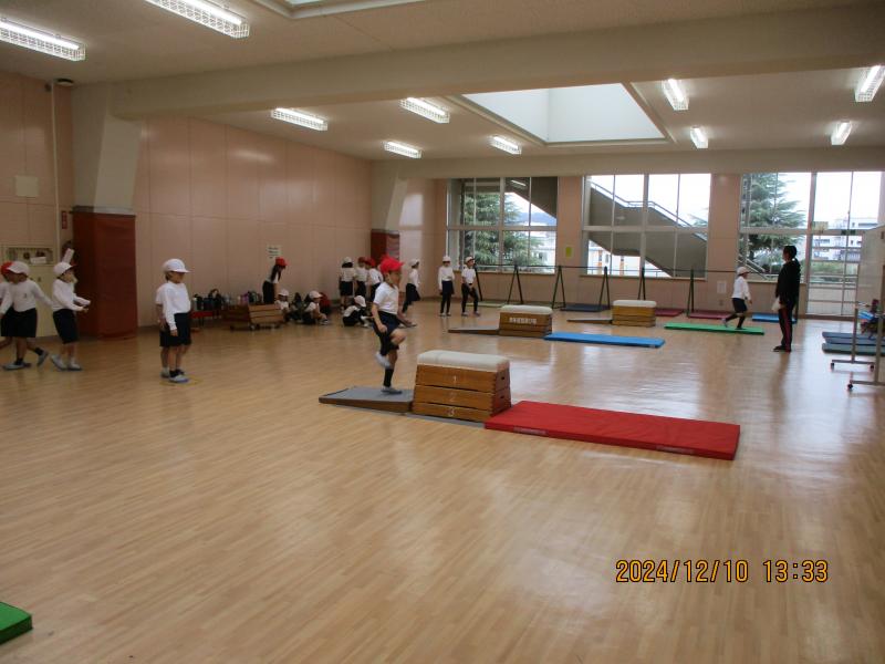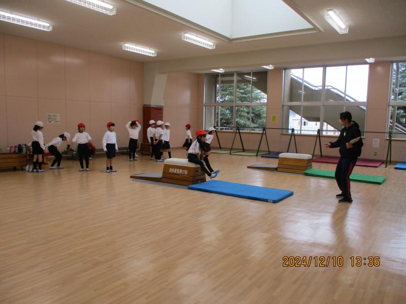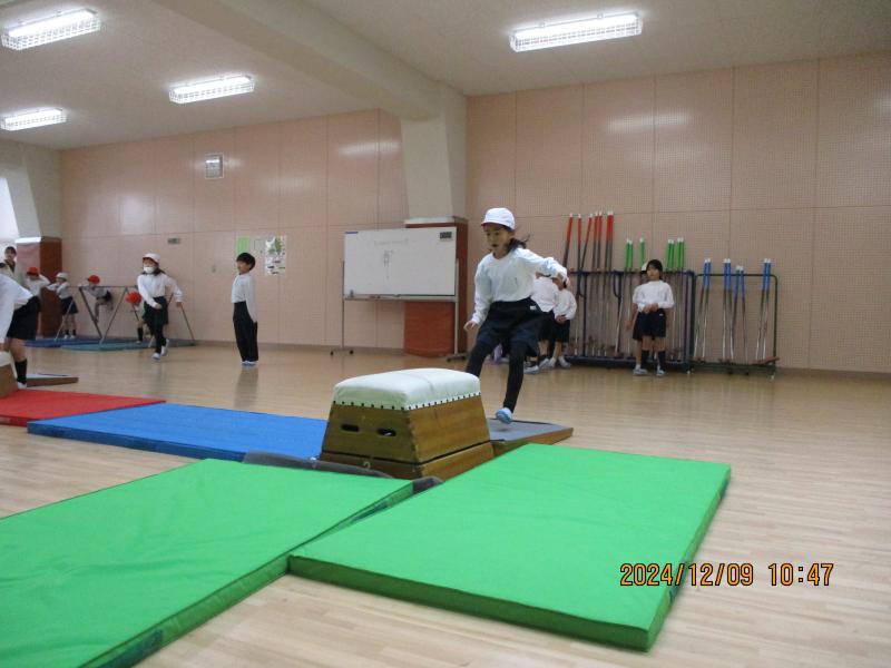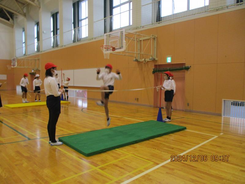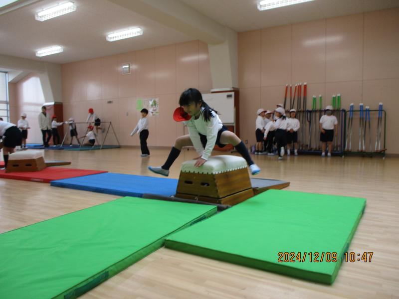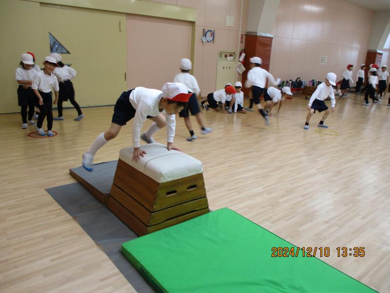 1年生体育です。縄跳びや跳び箱に挑戦中