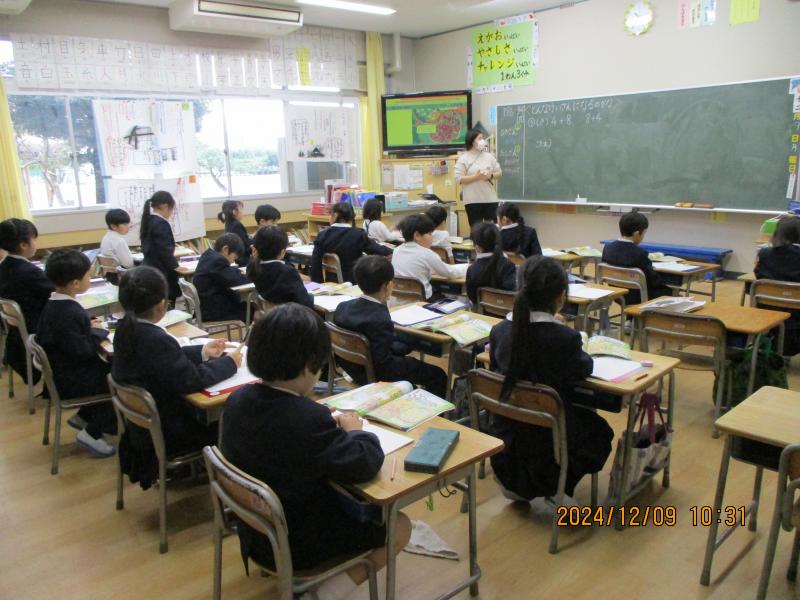 2年1組は、算数でした。とても大切な単元です。「1あたり量」「もととなる長さ」など、今後、割合や何倍のスタートです。