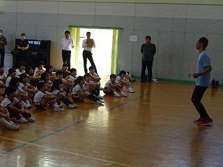 本日、7月に続いて2回目の体力向上アクション事業がありました。県立大学宮口教授をお迎えし、4~6年生が「おにごっこ」「なわとび」「ハードル走(正式にタイムをとって)」等で体力を高める種々のプログラムに取り組みました。子供達は、もう夢中になって動きました。すごく楽しかったようです。次回は10月。待ちきれませんね!