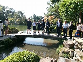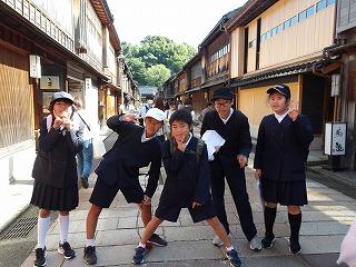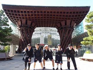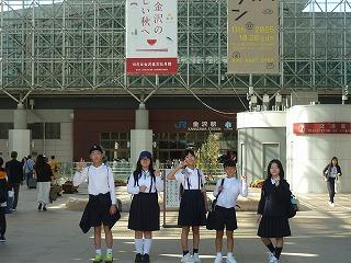 本校の修学旅行は隔年実施、今年度は修学旅行の年です。前回に引き続き、上戸小5・6年生と本校5・6年生合同で実施しました。10月16日(水)、修学旅行1日目。小雨の中での出発でしたが、子供達の表情は期待で輝いていました。行きのバス車内は両校の子供達が準備したレクレ(〇Xクイズ、ビンゴ等)で大盛り上がり。最初の目的地はサンヒルズ小松。サイエンスマジックショーに歓声が沸き、科学を活用した遊びが体験出来るワンダーランドに夢中になり、そして-200度の世界に驚愕しました。サイエンスヒルズ小松での興奮が冷めやらぬ内に、次の目的地、いしかわ動物園へ。ここでは4つの班毎に思い思いの順序で動物たちとふれあい、最後は一緒にトキのお話を聞きました。いしかわ動物園では雨が心配されましたが、幸いにも大きな雨にはあたらずにすみました。いしかわ動物園を後に、バスは宿泊先である、県青少年研修センターへ。近年、宿泊はずっとここです。体操服に着替え、リラックスモード。ハンバーグ、トンカツなどのボリーミィな夕食、みんなでのお風呂。部屋で友達と過ごす時間も修学旅行の楽しみ。この夜はどんな夢を見たでしょうか。2日目。朝食は7時から。たっぷりの朝食でしたが、全員完食。エネルギーチャージは十分です。先ずは、兼六園。ボランティアガイドの「まいどさん」が全グループに一人ずつつき、丁寧で深く楽しい説明で、兼六園の魅力を伝えてくれました。その後は、いよいよ「班別自主プラン」。それぞれが事前に立てたプランで、市内を巡ります。「21世紀美術館」「ひがし茶屋街」「観光物産館」「金沢城」などなど。昼食の場もラーメン等様々。道に迷うシーンもありましたが、循環バス等を上手く利用していました。集合場所である金沢駅についてからはお土産タイムとなったようで、それぞれが家族の顔を思い浮かべながら熱心にお土産を選んでいたようでした。帰りのバス車内は寝てしまった子もいてとっても静かでした。あっという間の2日間でした。たった2日間ですが、子供達は色んな意味で大きく成長したことと思います。この後の活躍が楽しみです。