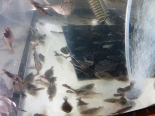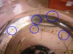 月曜日,残念ながら,1ぴきが白い腹をだしてひっくり返っていました。死んじゃったんですね。