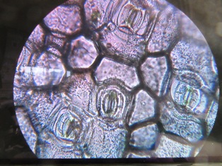 ある子のプレパラートには,写真のような生き物がいました。ワムシなのか,ラッパムシなのか分かりませんが,口にある繊毛を盛んに動かして,自分より小さな生き物を食べようとしているようすが見られました。上のでかいやつは,花粉か何かが割れたものだと思います。