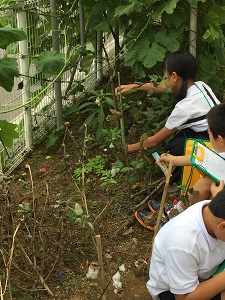 観察したのは,ヘチマ,アサガオ,ゴーヤ,ヒガンバナ,そして,キキョウです。