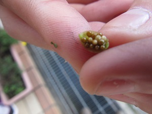 子どもの観察用紙には,「色は緑色で,分からなかった。鳥とかにつかまらないためだと思う」なんてことも書いてありました。やっぱり,本物を育てるって,実感できますね。