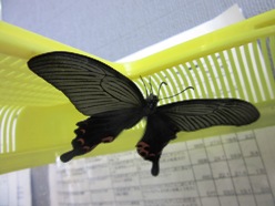 3年生は,モンシロチョウを,一人一人が専用のケースに入れて,たまごから育てています。今年の,モンシロチョウの羽化第1号です(みんなで育てていたヤツは,すでに何匹か旅立っています)。